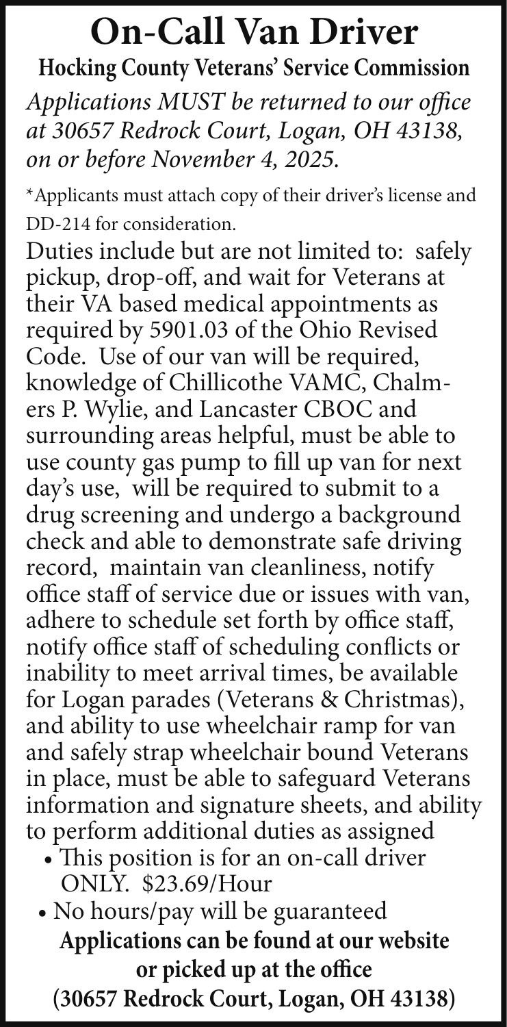 Oct 16, 2025. Hocking County Drivers Jobs from Ohio Valley Jobs