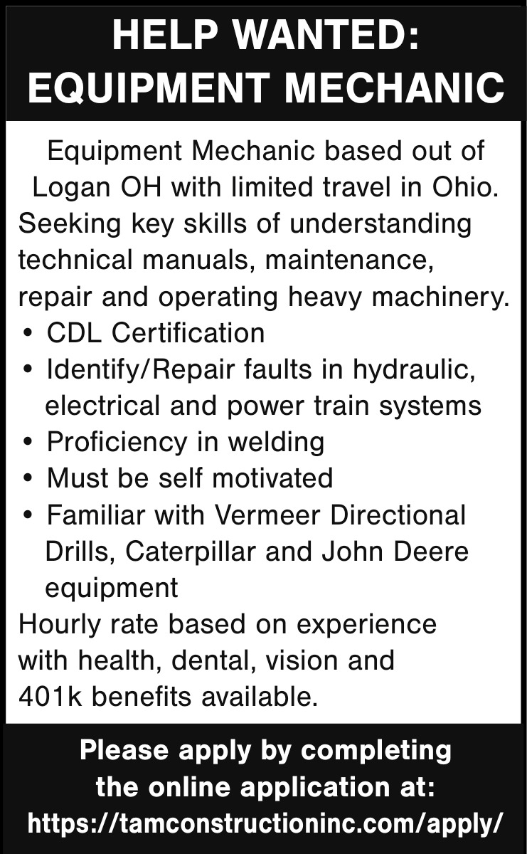 Mar 03, 2026. Tam Construction Mechanics Jobs from Ohio Valley Jobs