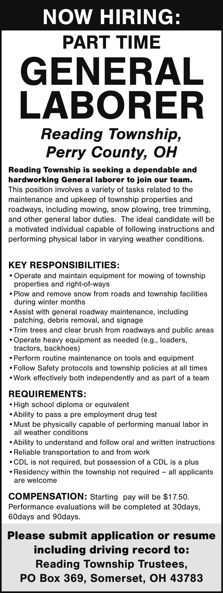 Mar 11, 2026. Reading Township General Jobs from Ohio Valley Jobs