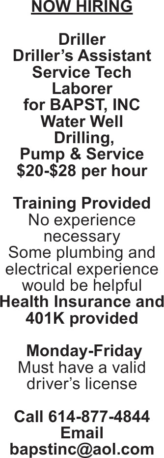 Jobs for BAPST, Inc. in Southeast Ohio