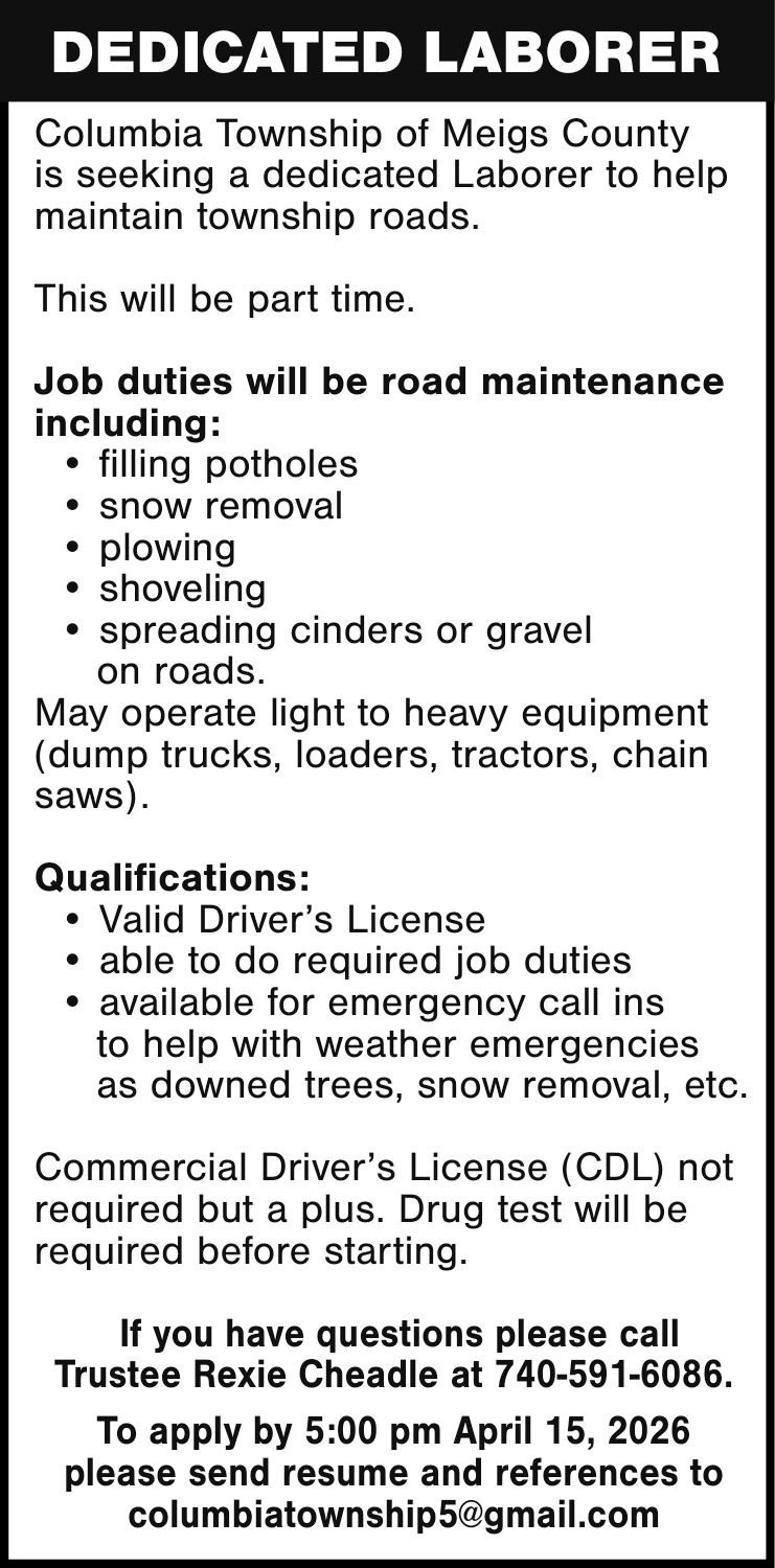 Jobs for Columbia Township in Southeast Ohio